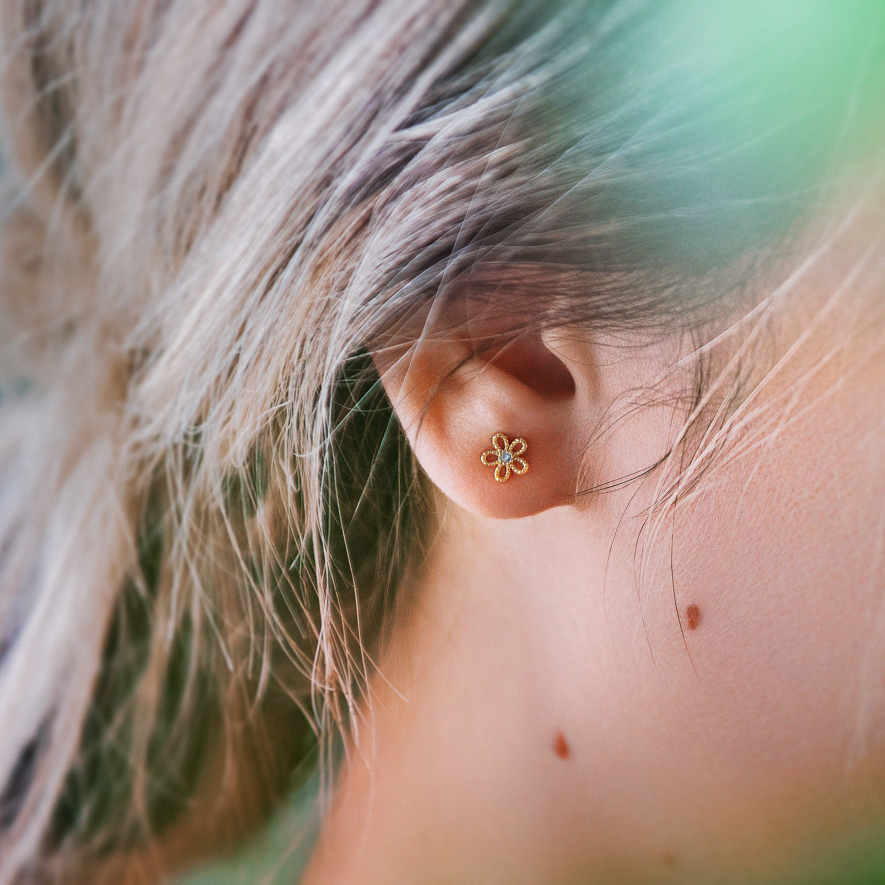 Boucles d’oreilles à tige fleurs miniatures or